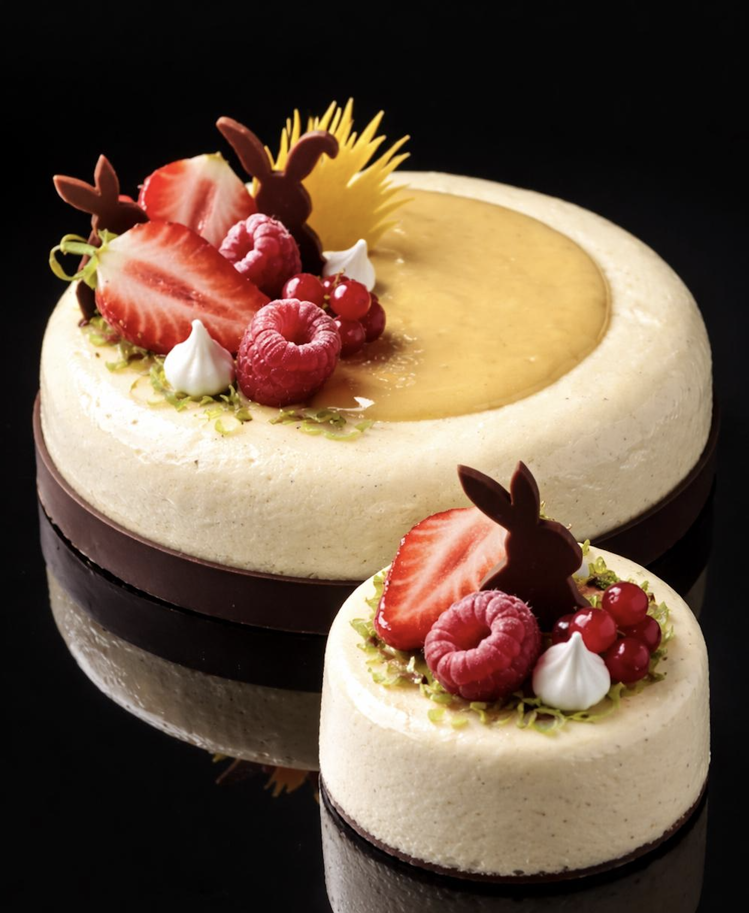 Crème citron vert et basilic fraîchement mêlée de fruits rouges des sous-bois. Crème fouettée vanille, biscuit moelleux au citron et sablé friable juste à souhait.