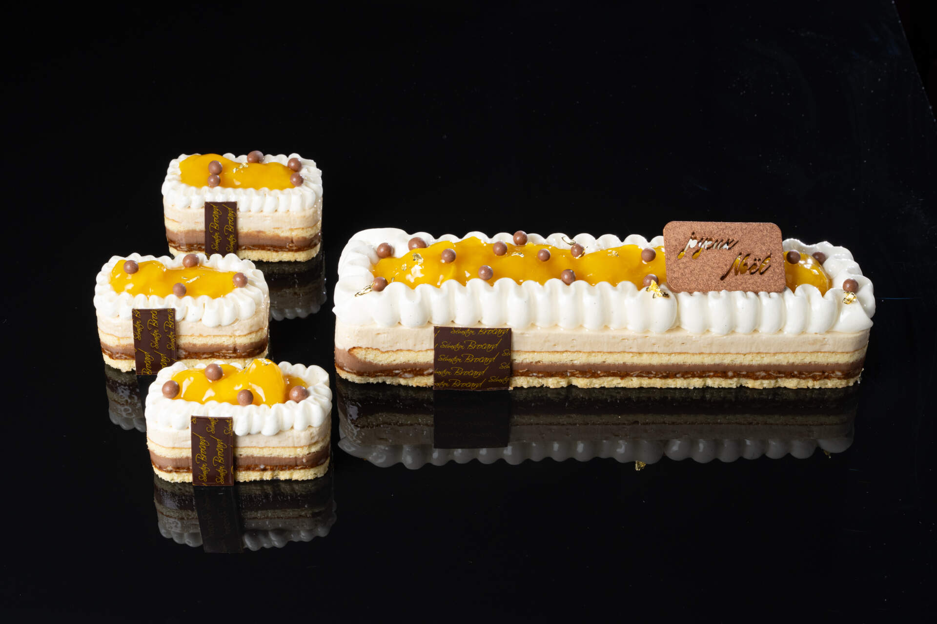 Notre Paris Brest réinterpréter, composé de croustillant de praliné noisette et amande. Un régal de crème fouettée tendrement vanille & compotée de mangue.