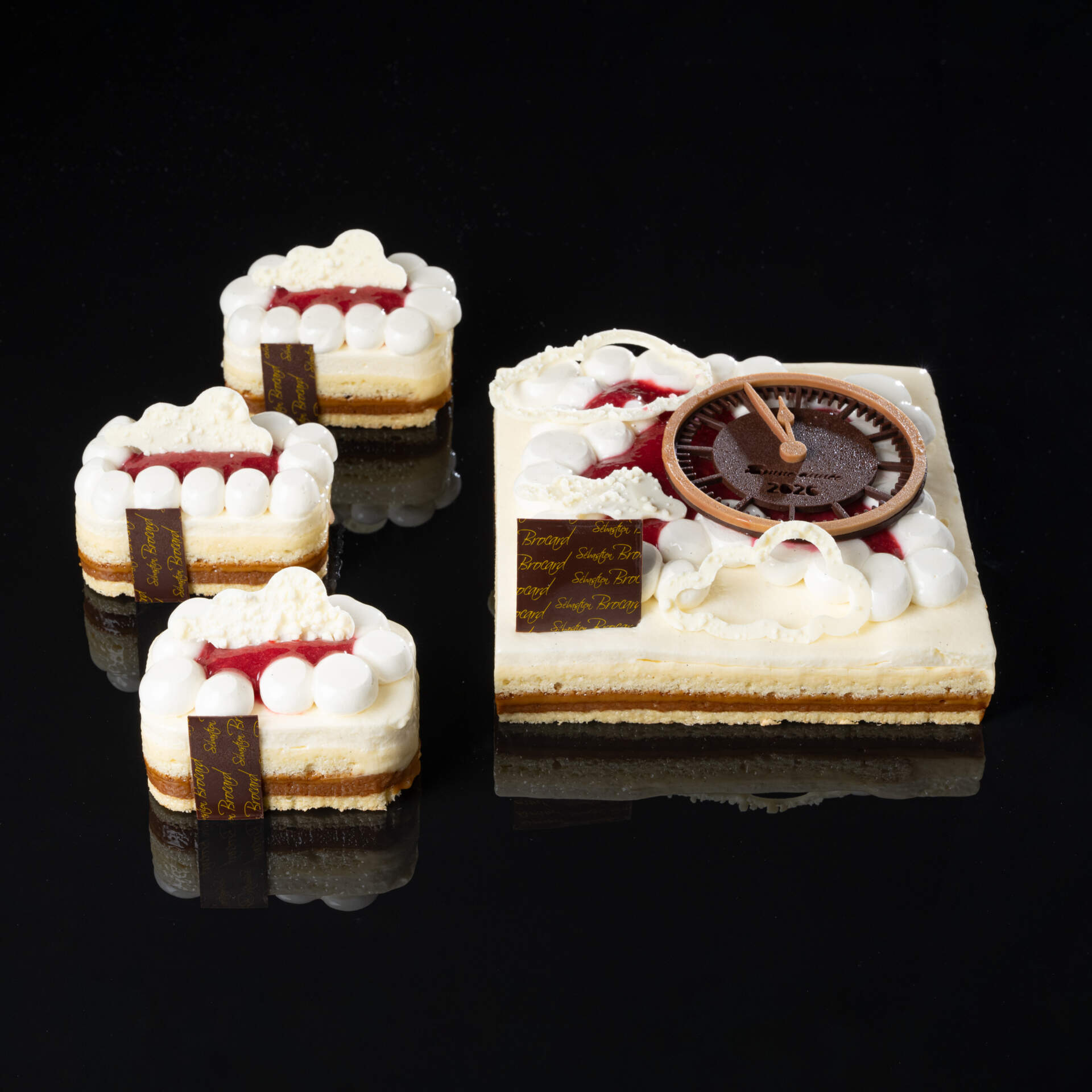 Finement craquant pour ce sablé praliné enveloppé de crème intensément vanille, rehausser d'un coulis de framboise.